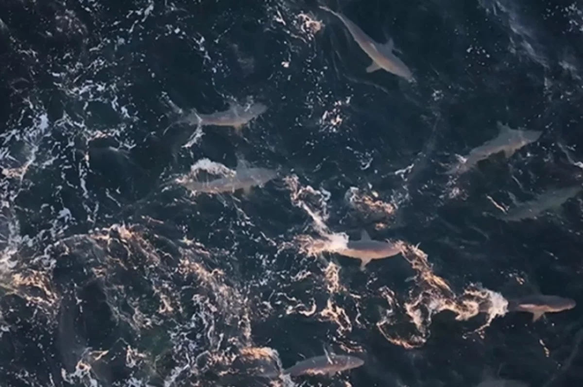 В США засняли скопление сотен акул, выпрыгивающих из воды