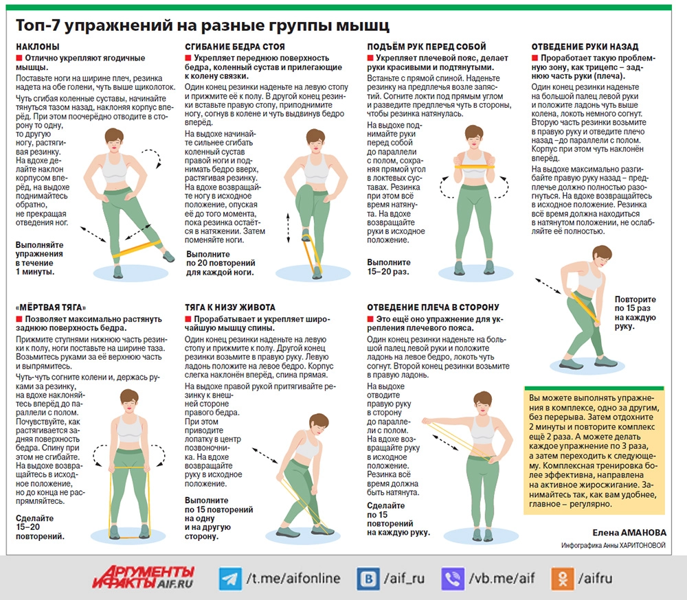 Топ-7 упражнений на разные группы мышц. Инфографика