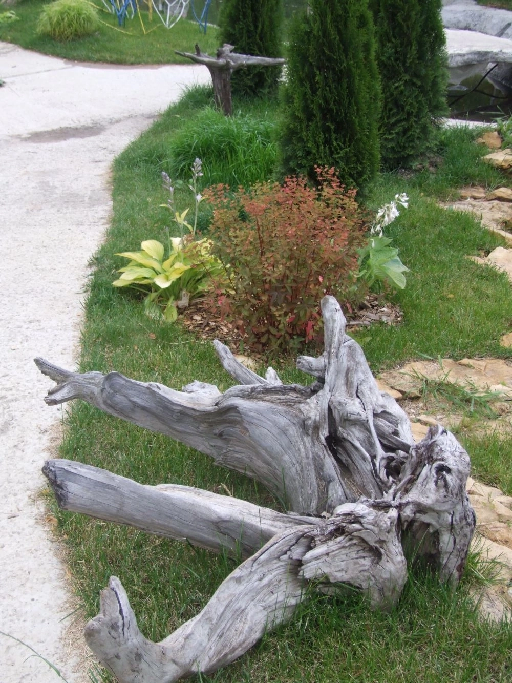 - Изящные предметы из металла. -Коряги. «Снопы» из веток в крупных контейнерах.