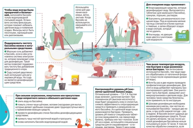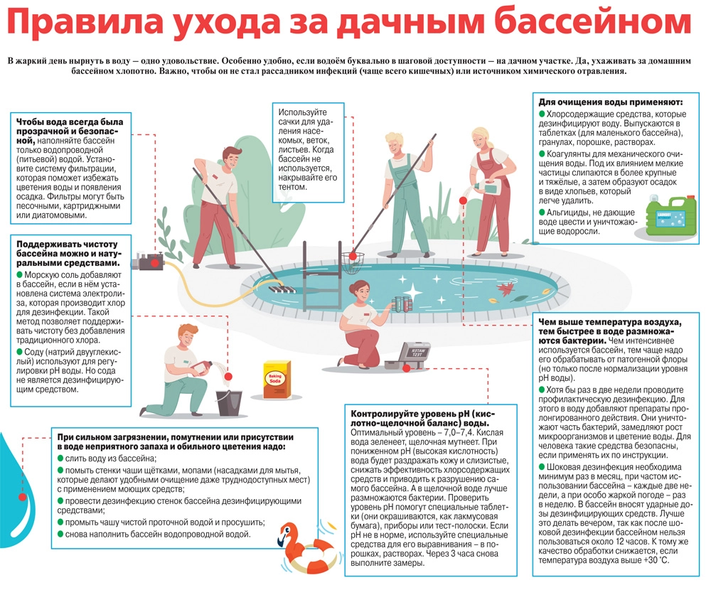Правила ухода за дачным бассейном. Инфографика